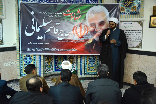 رئیس دانشگاه در این مراسم ضمن تسلیت شهادت سردار شهید قاسم سلیمانی اظهار کرد: سردار سپهبد قاسم سلیمانی، بزرگ مردی که همه عمر پربرکت خود را در خدمت به مردم و جهاد در راه خدا گذراند، به عهد و پیمانی که با خدا بست وفا کرد و به خیل یاران شهیدش پیوست.