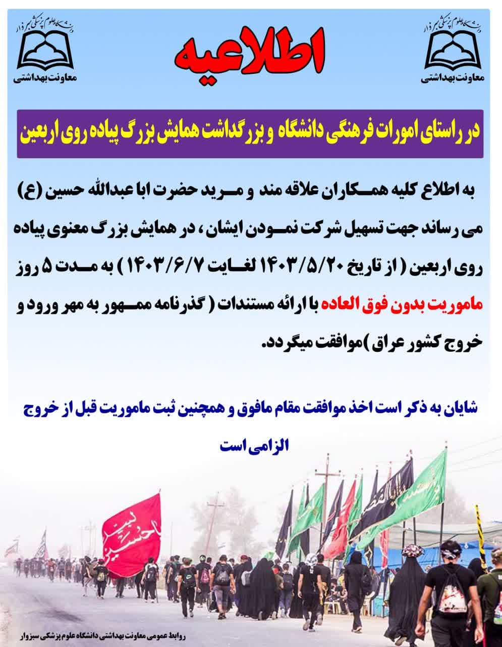 اطلاعیه پیاده روی اربعین روابط عمومی معاونت بهداشتی دانشگاه علوم پزشکی سبزوار