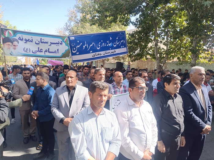 حضور پرشور جامعه پزشکی جغتای به همراه مردم ولایتمدار در محکومیت جنایات اخیر رژیم صهیونیستی و شهادت سید حسن نصرالله و همراهان ایشان به گزارش وبدا/ رئیس شبکه بهداشت و درمان به همراه پرسنل، مدیر و اعضای بسیج جامعه پزشکی جغتای همراه با مردم، مسئولین، روز دوشنبه 9مهرماه 1403 در میدان شهرداری شهر جغتای اجتماع و ضمن محکوم کردن جنایات اخیر رژیم صهیونیستی در هدف قرار دادن بیروت، و شهادت فرمانده بزرگ حزب الله شهید سید حسن نصرالله، خواستار انتقام از این جنایات ددمنشانه و حمایت قاطع از مردم مظلوم و مقاومت لبنان و فلسطین شدند. گزارش تصویری؛