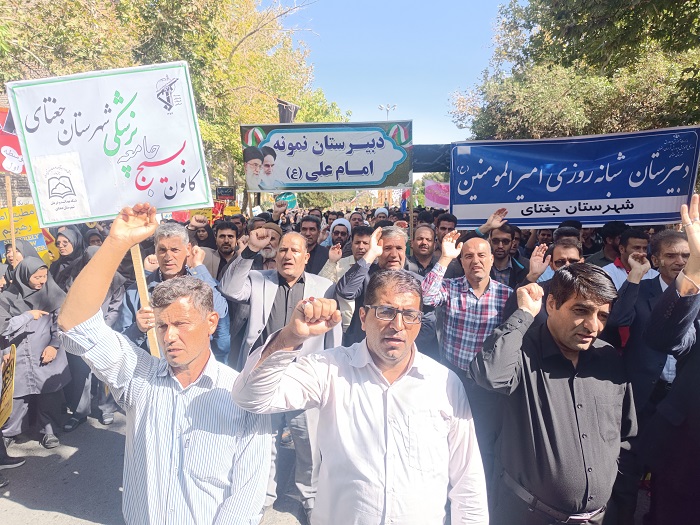 روابط عمومی شبکه بهداشت و بیمارستان ولی عصر(عج) جغتای؛ حضور پرشور جامعه پزشکی جغتای در اجتماع ضد صهیونستی