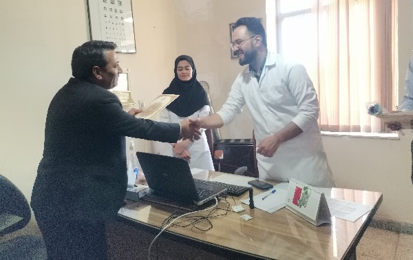 به روایت تصویر تجلیل از پزشکان شهرستان خوشاب به مناسبت روز پزشک سرپرست شبکه بهداشت و درمان به همراه مسئولین ستادی و مسئولین ادارات از پزشکان شاغل در مراکز خدمات جامع سلامت با اهدا لوح تقدیر تجلیل و تقدیر به عمل آورد تجلیل از پزشکان شاغل در مراکز خدمات جامع سلامت شهرستان خوشاب با حضور امام جمعه، فرماندار، سرپرست شبکه بهداشت و درمان، جمعی از مسئولین ادارات و پرسنل ستادی شبکه بهداشت به مناسبت روز پزشک