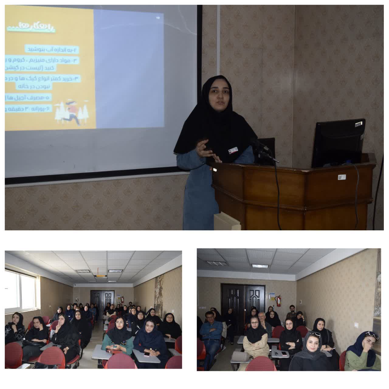 برگزاری کارگاه آموزشی،تغذیه و تندرستی کارگاه آموزشی تغذیه و تندرستی در خصوص اصول تغذیه،تغذیه در دوران های مختلف زندگی و ارزیابی تغذیه مطالبی ارائه شد.