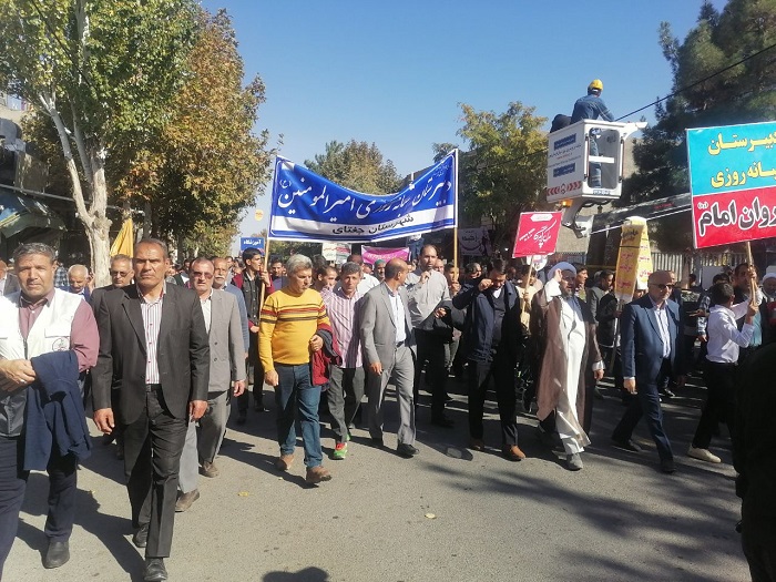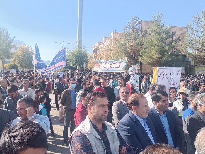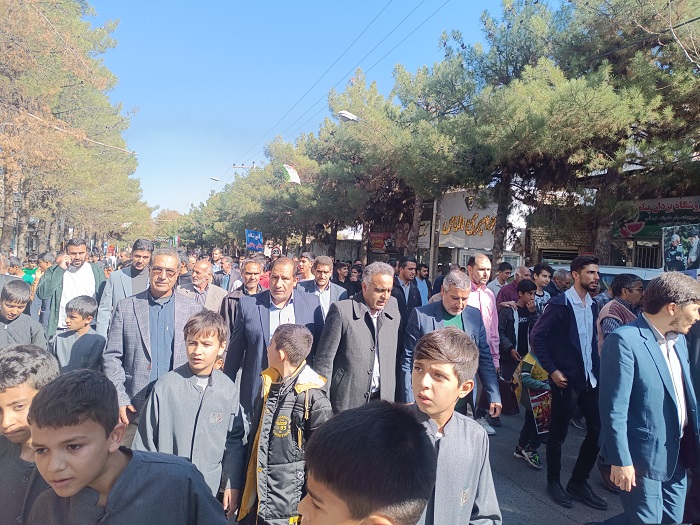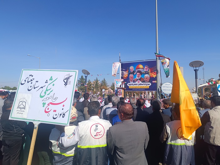 روابط عمومی شبکه بهداشت و بیمارستان ولی عصر(عج) جغتای؛ حضور پرشور جامعه پزشکی جغتای در راهپيمايي یومالله ۱۳ آبان رئیس و پرسنل شبکه بهداشت و بیمارستان ولی عصر(عج) و اعضای بسیج جامعه پزشکی جغتای، همگام با ملت با بصیر ایران در مراسم راهپيمايي یومالله ۱۳ آبان "روزملی مبارزه با استکبارجهانی"، حضوری با شکوه داشتند. رئیس و پرسنل شبکه بهداشت و بیمارستان ولی عصر(عج) و اعضای بسیج جامعه پزشکی جغتای، همگام با ملت با بصیر ایران در مراسم راهپيمايي یومالله ۱۳ آبان "روزملی مبارزه با استکبارجهانی"، حضوری با شکوه داشتند. به گزارش وبدا/ غلامرضا شرفی رئیس شبکه بهداشت و بیمارستان ولی عصر(عج) به همراه پرسنل و اعضای کانون بسیج جامعه پزشکی شهرستان جغتای همگام با ملت با بصیرت و همیشه در صحنه ایران، ضمن ادای احترام و نثار سلام و صلوات به روح پرفتوح شهدای طریق القدس، با حضور پرشور در راهپیمایی عظیم یوم الله ۱۳ آبان، و اعلام حمایت قاطع از ملت قهرمان فلسطین ولبنان، بویژه گروههای مقاومت اسلامی، آرمان بزرگ آزادی مسجد الاقصی، دستاوردهای انقلاب اسلامی و تجدید میثاق با آرمان های حضرت امام راحل(ره)، مقام معظم رهبری حضرت امام خامنه ای(مدظله العالی) و شهیدان، برائت و انزجار خود را از آمریکای تروریست، رژیم صهیونیستی اسرائیل غاصب و کودک کش و کشورهای هم پیمان آنها اعلام کردند. گفتنی است؛ این مراسم از لحظات آغازین با حضور گسترده مردم، و با سر دادن شعارهای (محور راهپیمایی 13 آبان 1403"آمریکا محور شارت های جهان") «مرگ بر آمریکا» و «مرگ بر اسرائیل» از میدان سردارشهید حاج قاسم سلیمانی به سمت مسجد جامع شهر جغتای همراه بود.