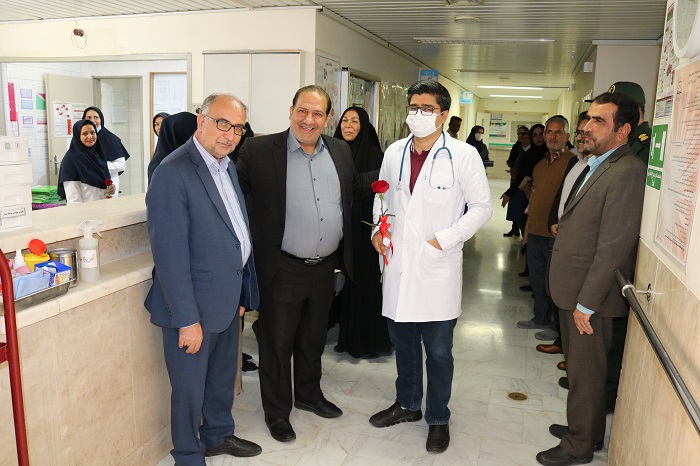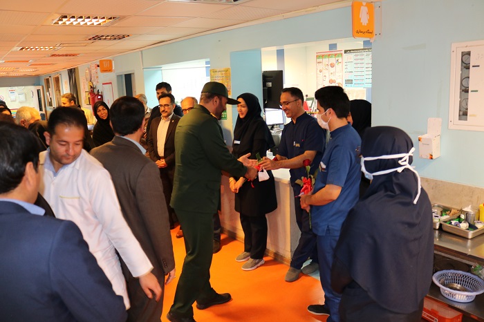 حضور دکتر ابراهیمی فرماندار جغتای و مسئولان دستگاه های اجرائی، نظامی و انتظامی و خادمیاران رضوی شهرستان جهت تبریک روز پرستار در بیمارستان ولیعصر(عج) شهرستان جغتای گزارش تصویری؛