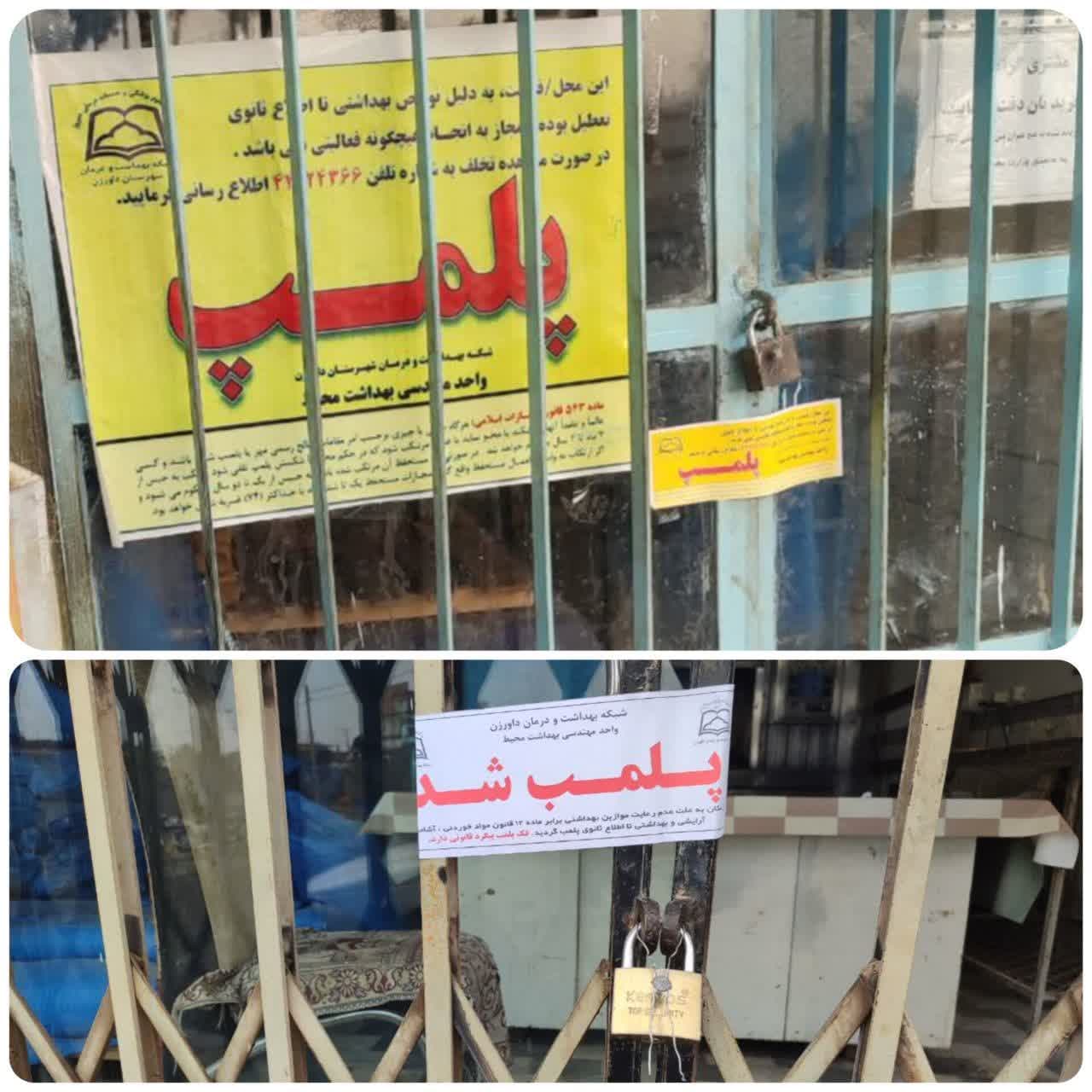 🌐پلمب ۲ باب صنف نانوایی (نان روغنی) به علت عدم رعایت موازین بهداشتی در داورزن
