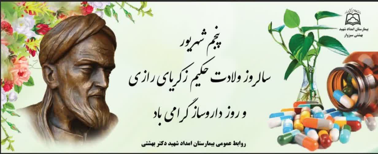 پیام تبریک ریاست و مدیریت مرکز آموزشی درمانی امداد شهید دکتر بهشتی به "مناسبت روز داروساز" آقای دکتر صنعی رئیس و آقای چشمی مدیر داخلی بیمارستان، در پیامی ضمن گرامیداشت زادروز حکیم زکریای رازی، روز داروساز را به جامعه داروسازی کشور تبریک گفتند. متن تبریک بدین شرح است: پنجم شهریورماه زاد روز دانشمند بزرگ مشرق زمین حکیم زکریای رازی شیمی دان، طبیب، داروشناس و داروساز بزرگ ایرانی فرصتی مغتنم و مناسب برای یادآوری و درک اهمیت جایگاه و خدمات جامعه پرتلاش و توانمند داروساز است. دارو و داروسازی درتامین سلامت جامعه و بیماران نقشی بی بدیل و جایگاه ویژه ای دارد و این خود بهانه ای است که در زادروز حکیم زکریای رازی همت والای این قشر، دیگربار ستوده شود. این روز فرصتی است تا از نقش حیاتی و بی بدیل جامعه داروسازان کشور به ویژه همکار گرامی داروساز این مرکز، آقای دکتر ضیائی که سهم به سزایی در زنجیره ارائه خدمات سلامت و نیز رفع نیازهای دارویی بیماران دارند، تشکر و قدردانی نماییم.