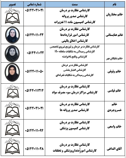 سبزوار - خیابان اسدآبادی - سازمان مرکزی دانشگاه علوم پزشکی سبزوار - طبقه سوم - معاونت درمان