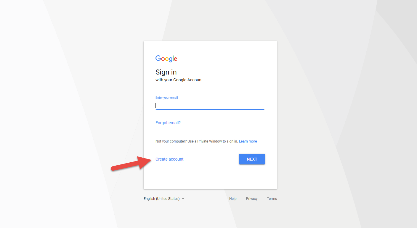 سپس در صورت داشتن اکانت گوگل وارد شده و در غیر این صورت می بایست اکانت گوگل ایجاد شود. برای این منظور بر روی create accont کلیک نمایید.