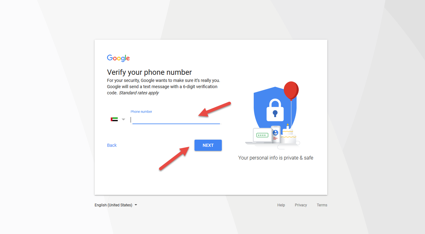 در مرحله بعد شماره تلفن را وارد کرده و Next را کلیک نمایید.