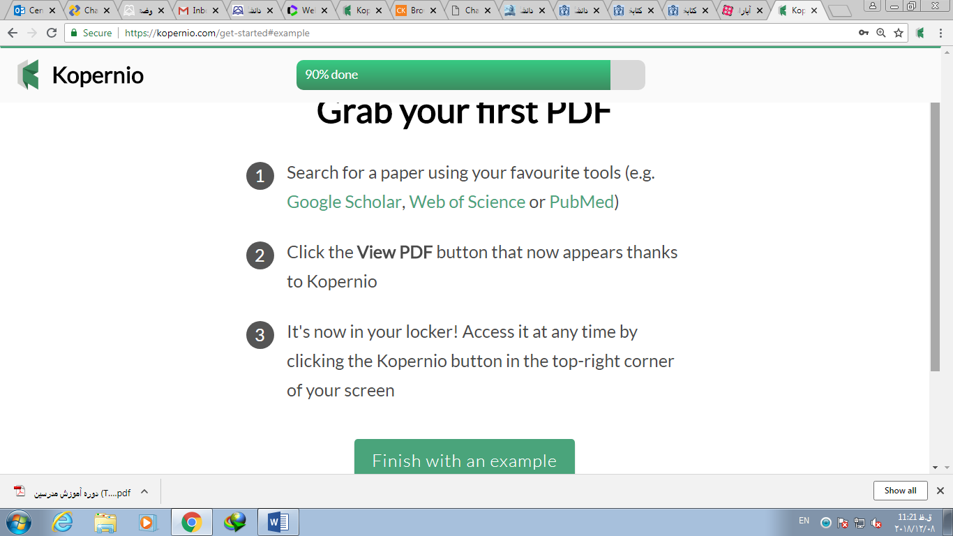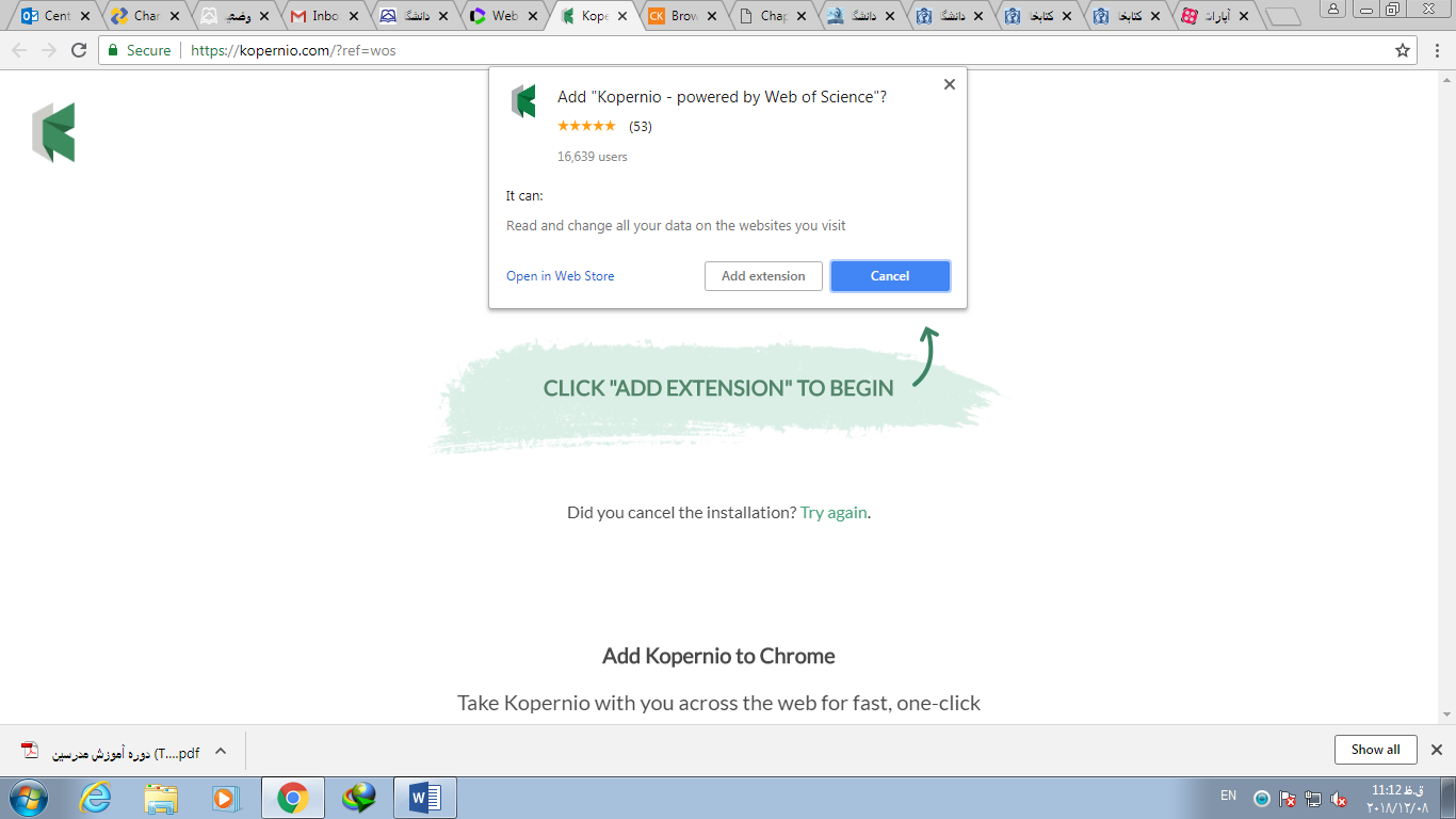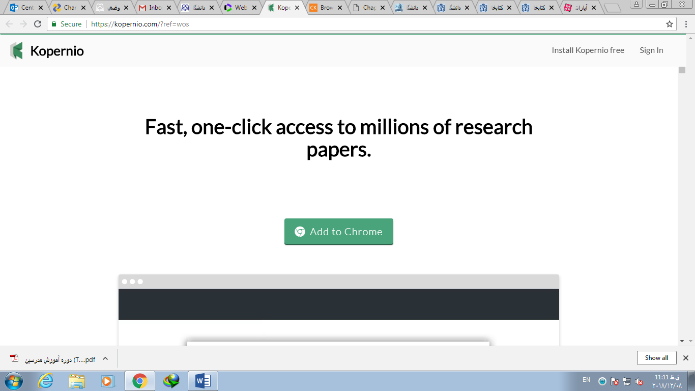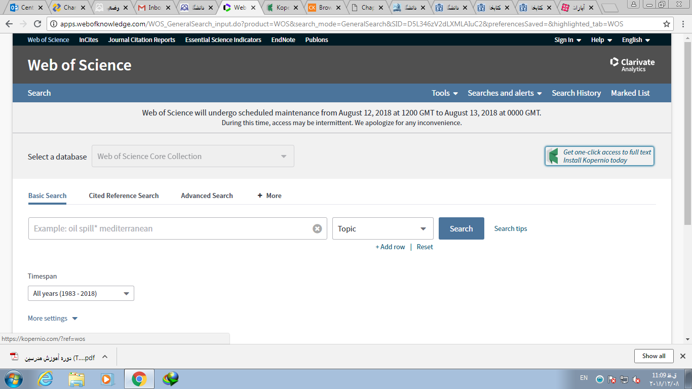 اضافه شدن بخش جدیدی در web of sciences از طریق افزودن بخش kopernio به مرورگر اینترنت در سیستم کامپیوتر خود امکان دسترسی به متن کامل مقالات برقرار می شود. با ورود به پایگاه web of science ، برروی بخش kopernio کلیک میکنیم.