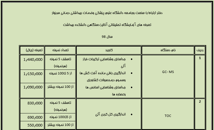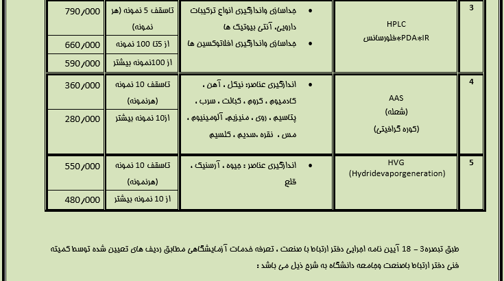 • تعرفه آزمایشگاه تحقیقاتی و آنالیز دستگاهی