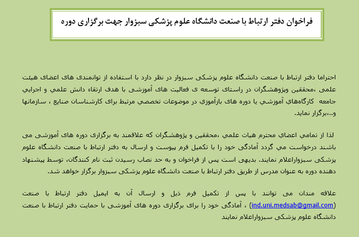 © کلیه حقوق متعلق به وبسایت دانشگاه علوم پزشکی سبزوار می‌باشد.