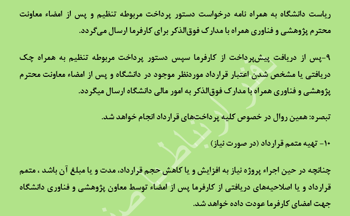 • چرخه اداری قرارداد پژوهشی