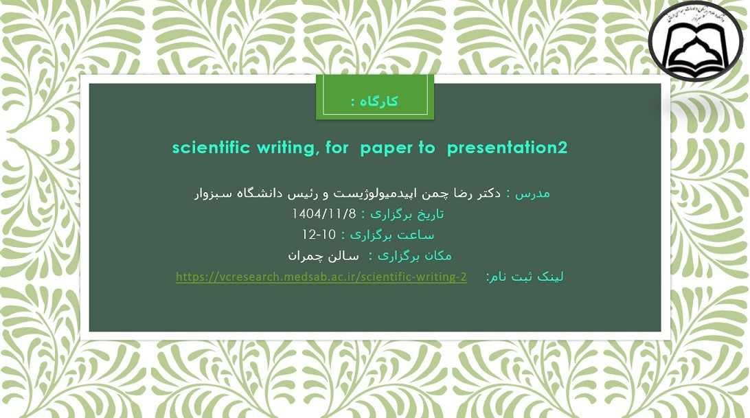 | 46 | کارگاه مهارت ارتباط موثر | 1404/09/25 | دکتر محمدرضا شگرف نخعی | |