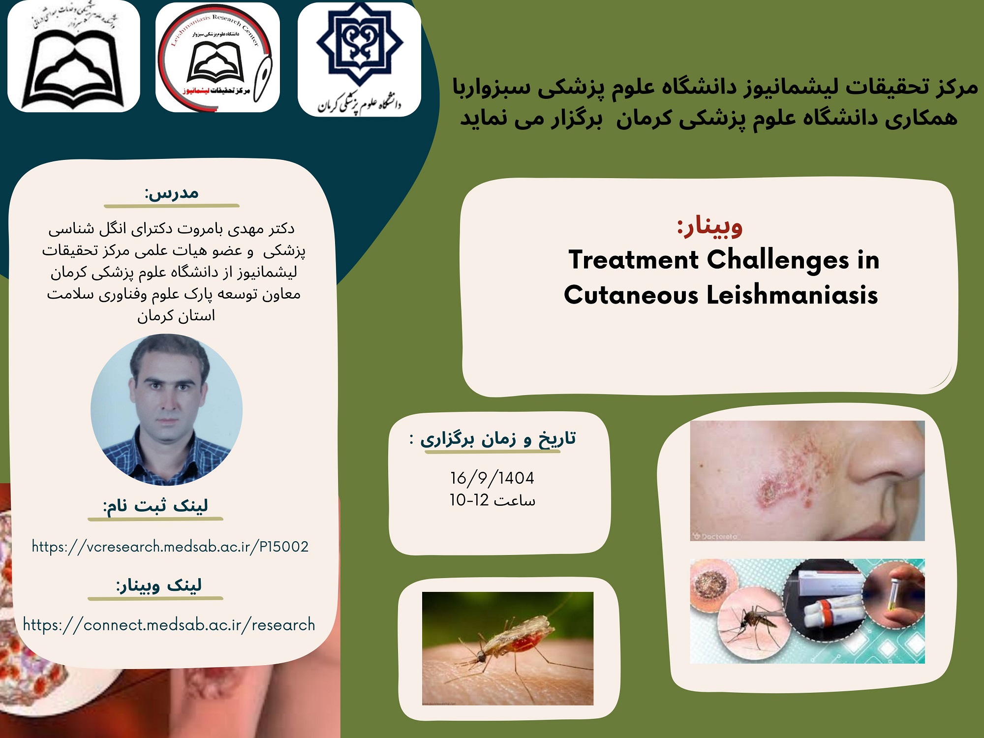 | Treatment challenges in cutaneus Leishmaniasis | 1404/09/16 | دکتر مهدی بامروت | ||